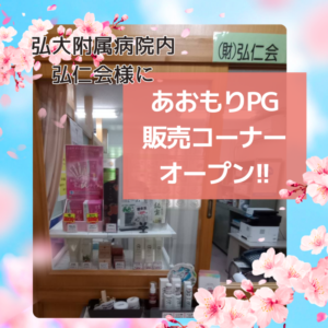 このたび、弘前大学医学部附属病院内・弘仁会サービスコーナーに「あおもりPG」販売コーナーを設置いただき、